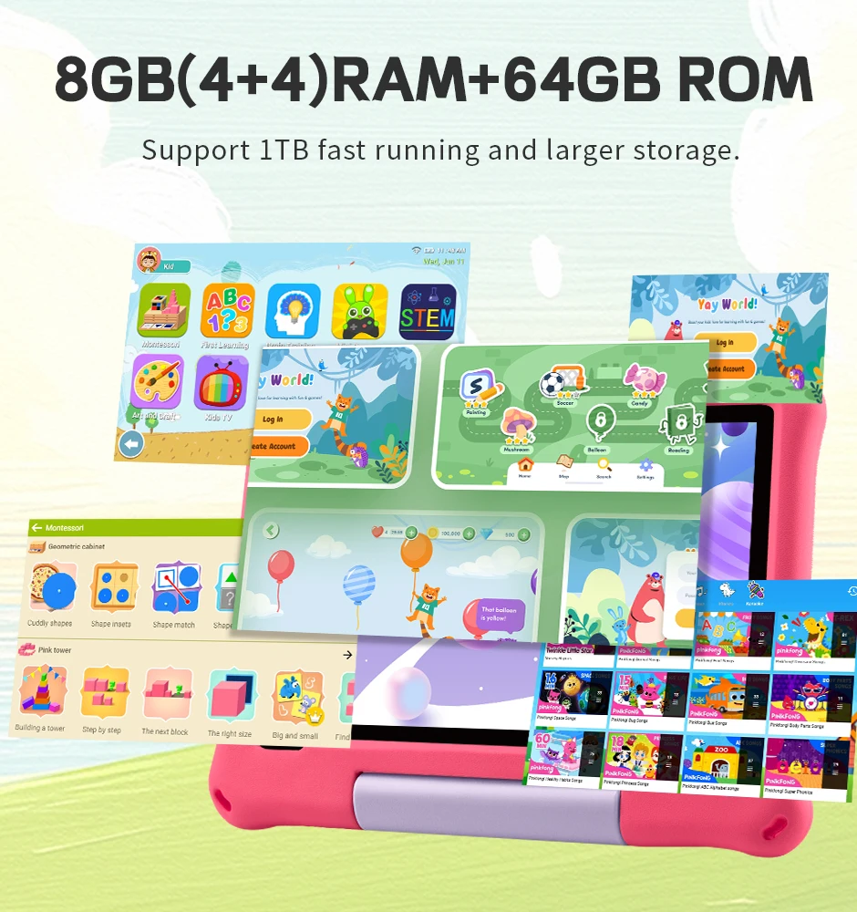 ❤【Stable Android 15 System & Powerful Octa-core CPU 】This 2025 NEWEST Android 15 Kids tablet is equipped with a high-performance octa-cores CPU, all functions have been strengthened to a new level. You will enjoy the smooth running of 8GB (4GB+4GB) RAM and 64GB ROM. Perfect for watching videos, learning, video chatting, and reading e-books easily .Unwind with your favorite apps like Disney+, Kindle, Netflix, Spotify and more through Google Play Store.