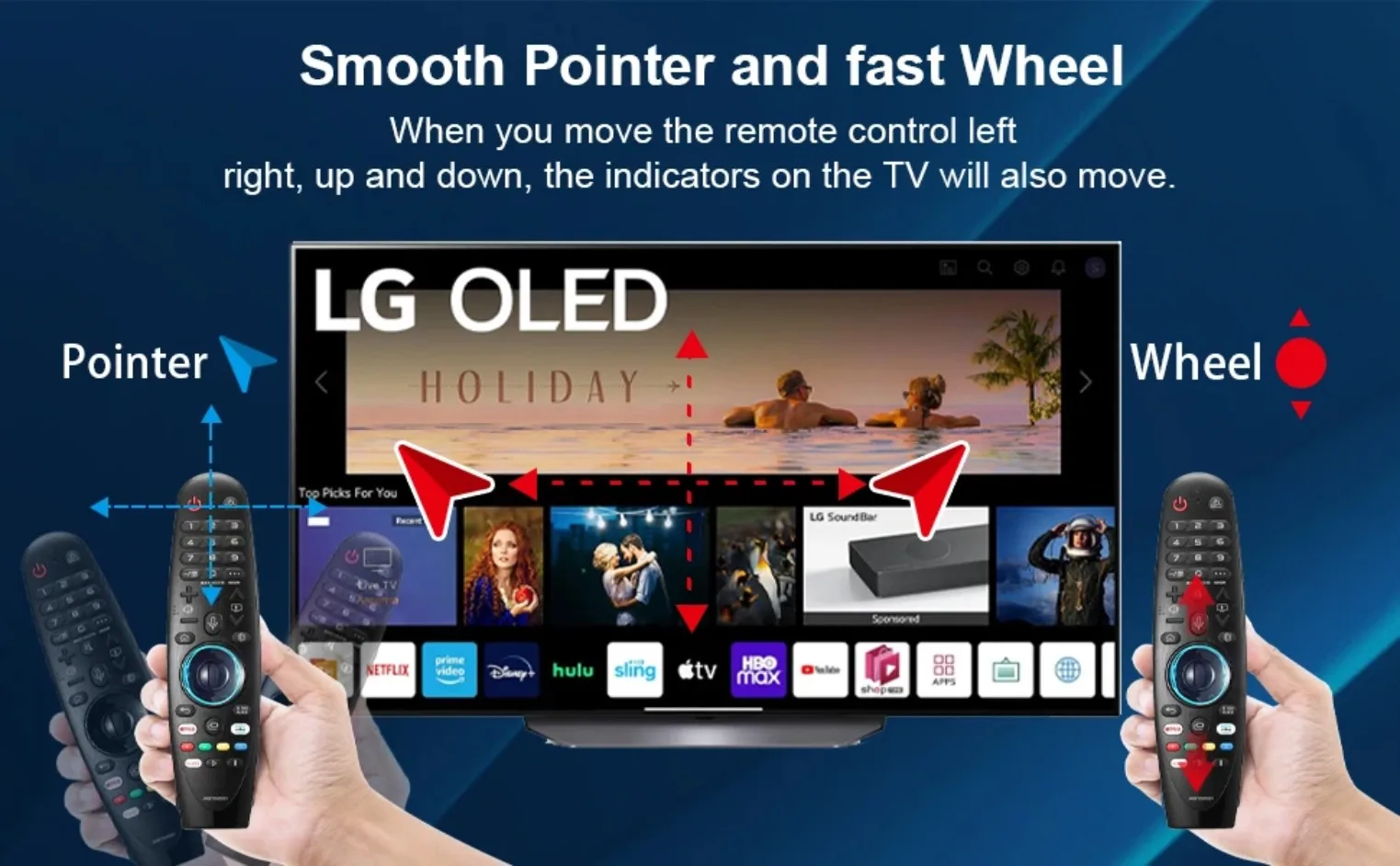 • 【Powerful Magic Remote】Intuitive Mouse Like Pointing and Wheel Control. With point, click, scroll functions, you can select the functions easily by moving and clicking the curson,this universal magic remote control is like a air mouse.so that you can reach any position on the TV screen as you wish. It also comes with voice control and 3 hot-keys, NETFLIX, Prime Video, Movies. You can also use Alexa and Google Voice Assistant, you'll find your content faster than ever before.